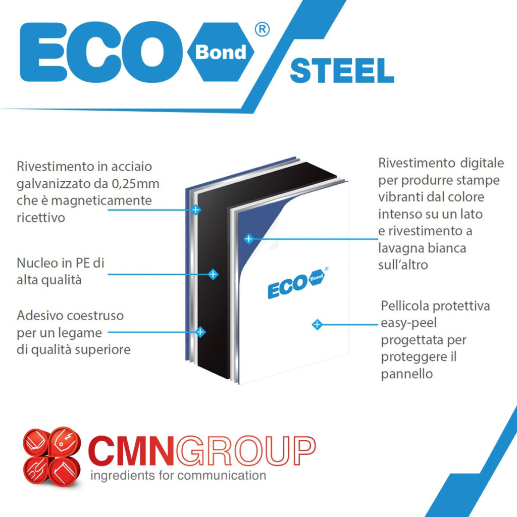 Entrambi i lati presentano una superficie piatta, liscia e uniforme: da una parte il rivestimento digitale permette di realizzare stampe di elevata qualità, mentre l’altro lato ha una finitura a lavagna bianca, scrivibile con appositi pennarelli cancellabili.Prodotto robusto, resistente e affidabile.